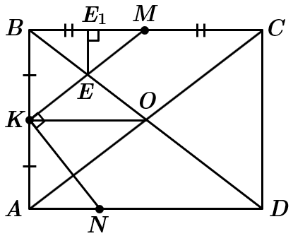 Це завдання перевіряє знання про прямокутник та його властивості, середню лінію трикутника та її властивості.