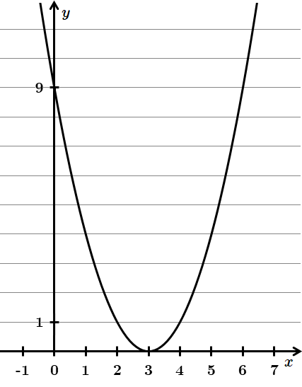 2. Побудова графіка. \(f(x)=x^2-6x+9\) – квадратична функція, графік – парабола. \(f(x)=(x-3)^2.\)