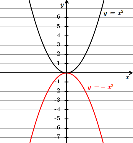 \begin{gather*} y=1-x^2,\\[7pt] y=-x^2+1. \end{gather*}1. Для побудови графіка функції \(y=-f(x)\) потрібно графік функції \(y=f(x)\) відобразити симетрично відносно осі \(Ox.\)
