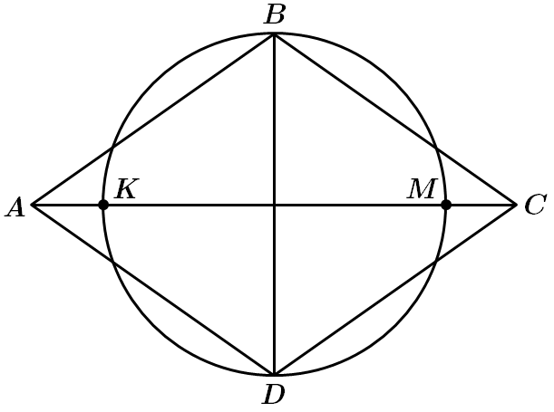 3. Центр кола, вписаного в ромб – точка перетину діагоналей точка