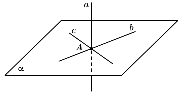 II. Твердження є правильним, через точку \(A\) можна провести безліч перпендикулярних площин до площини \(\style{font-style:normal;font-weight:bold;font-size:1.1em}{\alpha}.\) Достатньо, щоб побудована перпендикулярна площина проходила через пряму \(a\) з п. I.