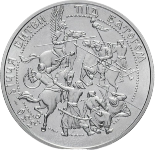 Зображену монету присвячено 350-річчю битви під Батогом, найвизначнішій перемозі української армії під час Визвольної війни.