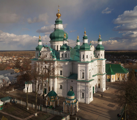 Пам'ятка на фото – це Троїцький собор Троїцько-Іллінського монастиря в Чернігові. Його будівництво пов'язане з діяльністю гетьмана Івана Мазепи, який у 1679–1689 роках надав кошти на спорудження собору в стилі козацького бароко.