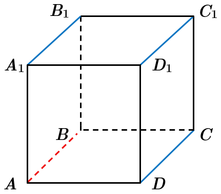 Отже, прямих, що проходять через ребра куба і є паралельними прямій \(AB\), – три \((CD\), \(\ C_1D_1\), \(\ A_1B_1).\)