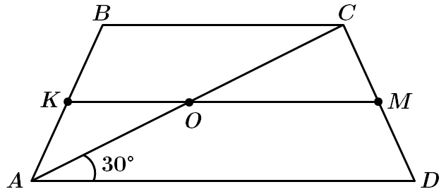 \begin{gather*} KM=\frac 12(BC+AD). \end{gather*}У \(\Delta ABC\ KO\) – середня лінія. За властивістю середньої лінії: $$ KO=\frac 12BC. $$ Oтже, \(BC=10\) см.