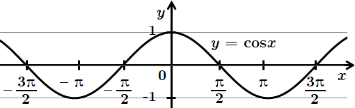 3. \(y=\cos x.\) З тригонометричних функцій \(y=\sin x\), \(y=\cos x\), \(y=\mathrm{tg}\ x\), \(y=\mathrm{ctg}\ x\) тільки одна функція парна – це \(y=\cos x\). Всі інші тригонометричні функції – непарні.