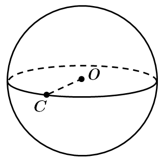 \begin{gather*} S=4\style{font-style:normal;font-weight:bold;font-size:1.1em}{\pi}R^2=300\style{font-style:normal;font-weight:bold;font-size:1.1em}{\pi}\ \text{см}^2,\\[7pt] 4R^2=300\ \text{см}^2,\\[7pt] R^2=75\ \text{см}^2,\\[7pt] R=OC=5\sqrt{3}\ \text{см}. \end{gather*}