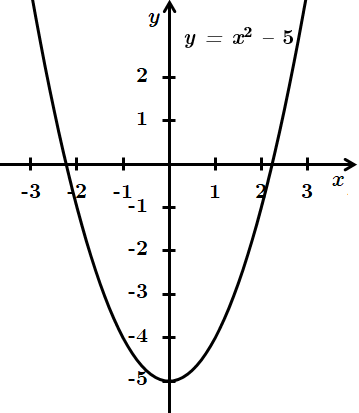 3. \(y=x^2-5\) – квадратична функція. Графік функції \(y=x^2\) перенесено вздовж осі \(Oy\) на \(5\) одиниць униз.