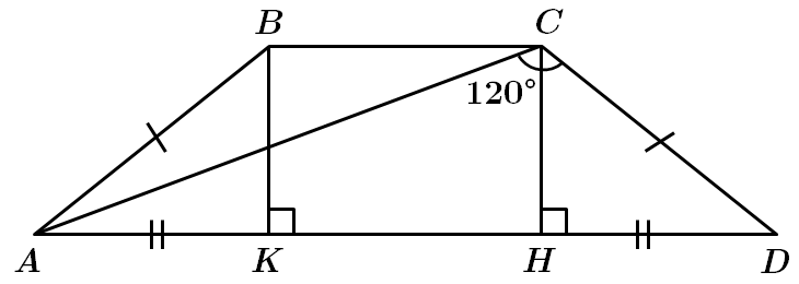 2. \(BK\ \perp\ AD.\) Проєкція \(AB\) на пряму \(AD\) – відрізок \(AK.\) \(ABCD\) – рівнобічна трапеція, тому \(AB=CD.\)