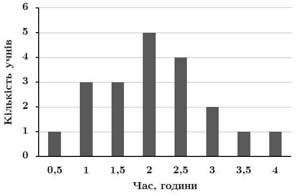 \(3\mathord{,}5\) та \(4\) години – по \(1\) учню.