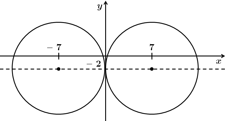 Для того, щоб коло дотикалося до осі \(Oy\), центр кола повинен бути в точці \((7; -2)\) або \((-7; -2).\)