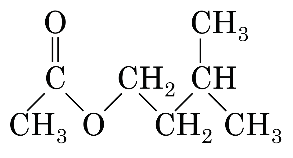 Проаналізувавши структурну формулу естеру (рис. 1) можна дійти висновку, що продуктами його гідролізу є етанова кислота й 3-метилбутан-1-ол (рис. 2).