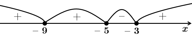 Розв'яжемо методом інтервалів. Нулі функції: