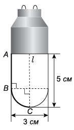 Площа активної поверхні світлодіодної лампи, зображеної на рисунку, є сумою площі бічної поверхні циліндра та площі півсфери. Площу бічної поверхні циліндра, утвореного обертанням відрізка