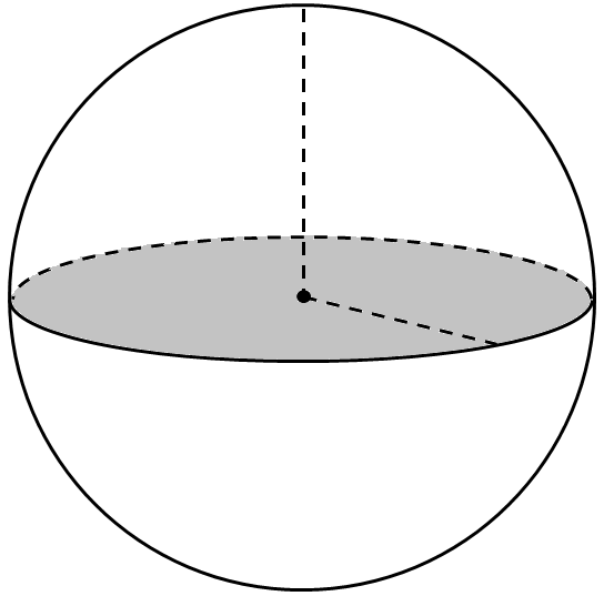 Площа великого круга дорівнює \(S.\) За формулою \(S=\style{font-style:normal;font-weight:bold;font-size:1.1em}{\pi}R^2\) знаходимо $$ R^2=\frac{S}{\style{font-style:normal;font-weight:bold;font-size:1.1em}{\pi}}. $$