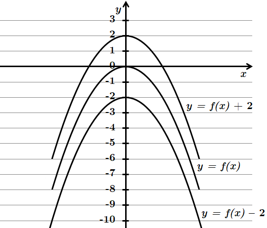 Для побудови графіка функції \(y=f(x)+c\) необхідно графік функції \(y=f(x)\) перенести вздовж осі \(Oy\) на \(c\) одиниць угору, якщо \(c\) додатне число або на \(c\) одиниць вниз, якщо \(c\) від’ємне число.