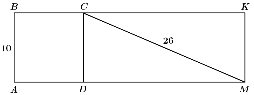 \(AB=CD=KM=10\) см. \(\Delta CKM\ (\angle K=90^\circ)\) за теоремою Піфагора: