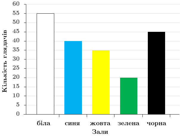 Знаходимо різницю між кількістю глядачів, які відвідали білу й зелену зали: