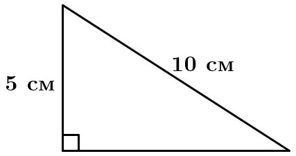 В. У прямокутному трикутнику, один з катетів якого удвічі менший за гіпотенузу, гострий кут, що є протилежним до меншого катета, дорівнює