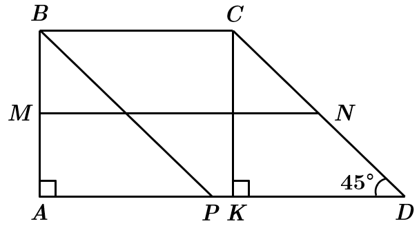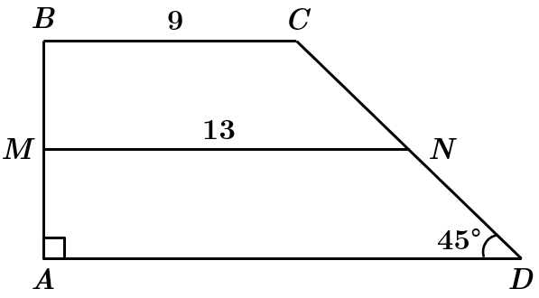 Це завдання перевіряє знання властивостей середньої лінії трапеції: середня лінія трапеції паралельна основам і дорівнює їх півсумі. Bміння визначати висоту трапеції як відповідний катет прямокутного трикутника.