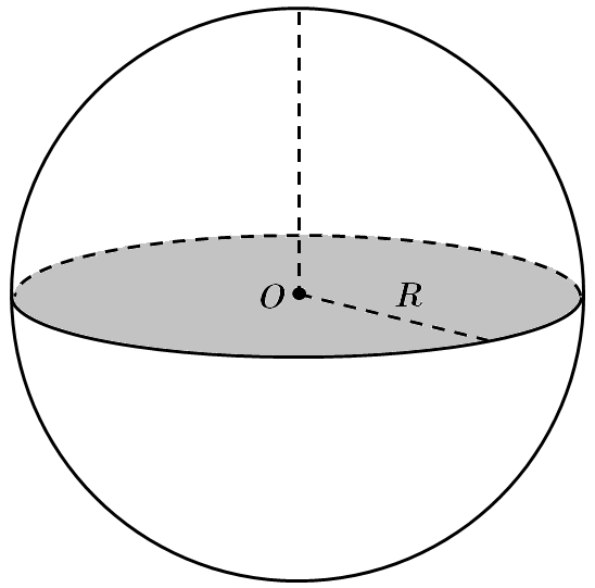 Площа великого круга дорівнює \(S.\) За формулою \(S=\style{font-style:normal;font-weight:bold;font-size:1.1em}{\pi}R^2\) знаходимо $$ R^2=\frac{S}{\style{font-style:normal;font-weight:bold;font-size:1.1em}{\pi}}. $$