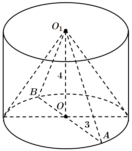 Нехай \(R=OA=3\) см, \(OO_1=H=4\) см.