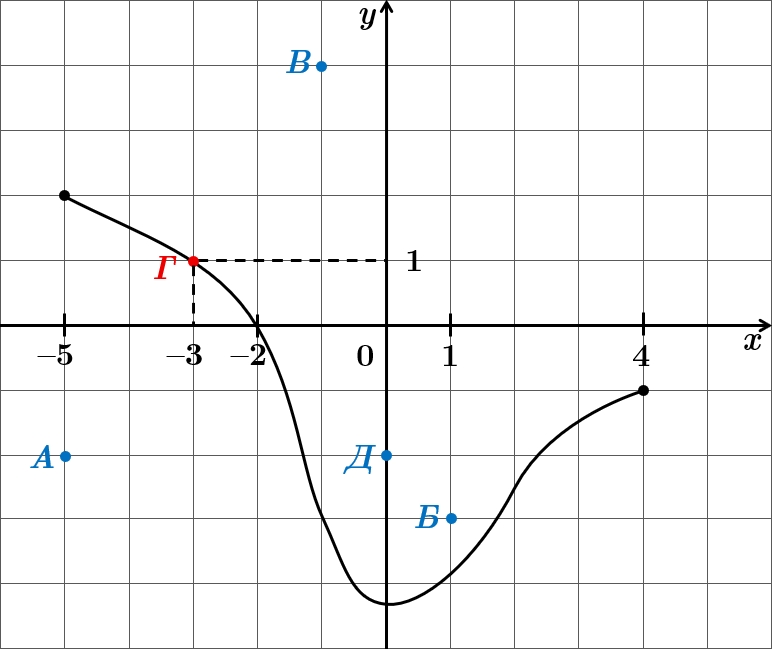 Точка належить графіку функції, якщо цей графік проходить через точку. З рисунка видно, що серед запропонованих точок лише точка