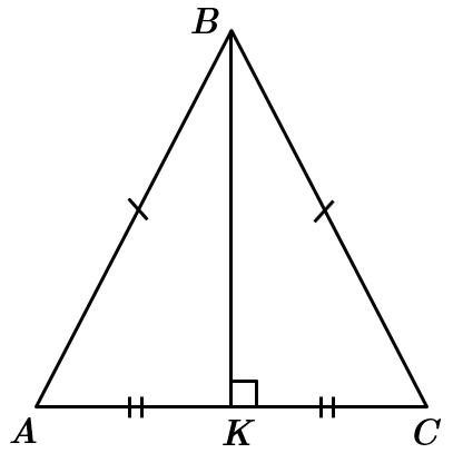 У рівнобедреному трикутнику бісектриса, проведена до основи, водночас є медіаною і висотою.