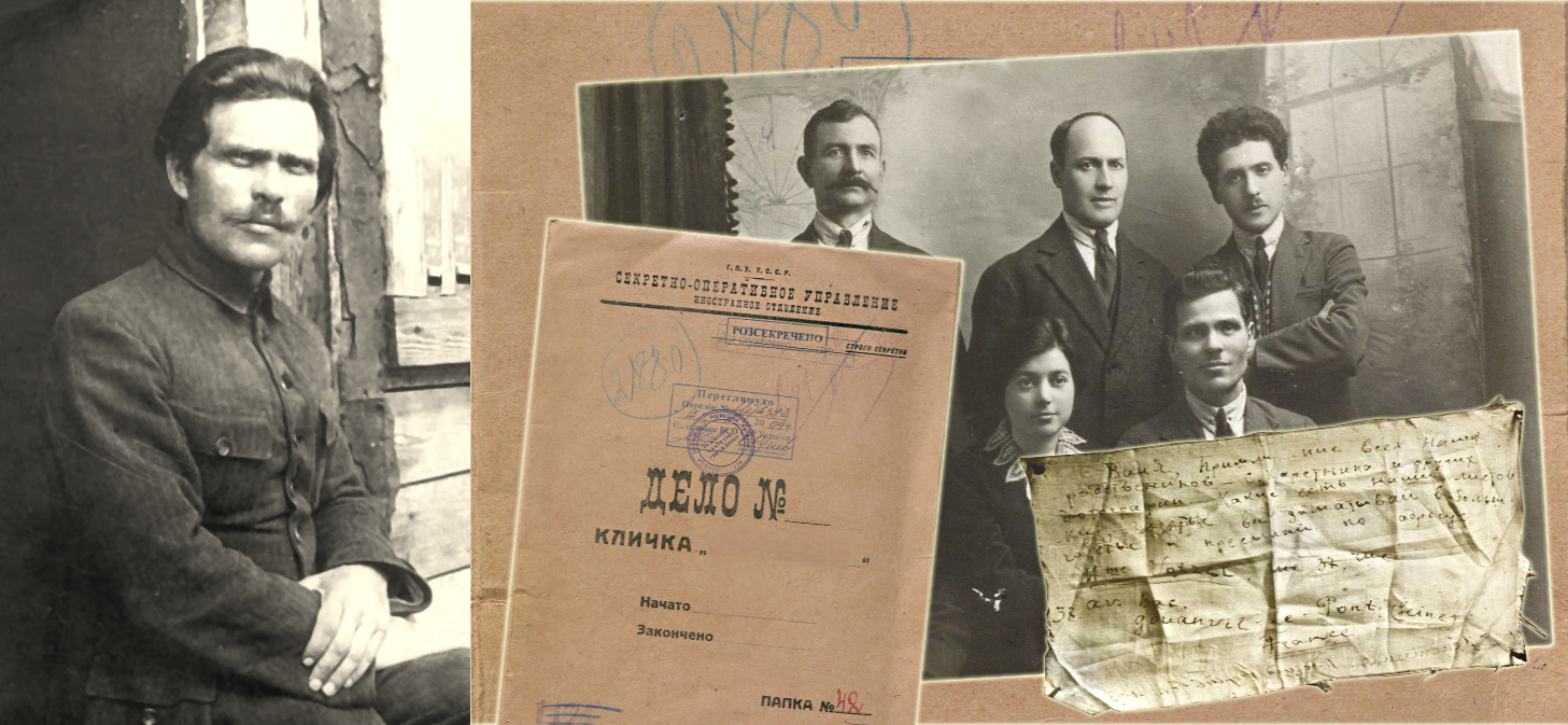 Частиною колажу є фото діяча, яке вказує на те, що в матеріалах Галузевого державного архіву Служби зовнішньої розвідки України йдеться про Нестора Махна – ідейного анархіста, ватажка селянського повстанського руху в 1918–1921 рр., командувача Революційної повстанської армії України.