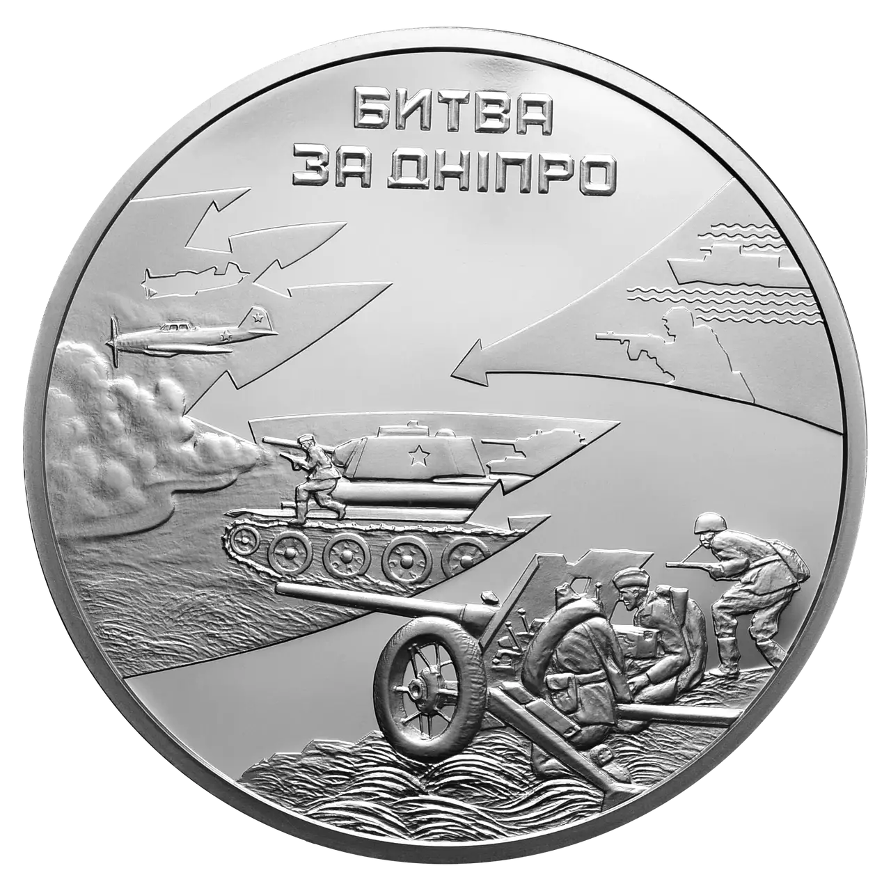Монету присвячено Битві за Дніпро – наступальним операціям Червоної армії серпня – грудня 1943 р. з метою звільнення Донбасу, Лівобережної України та виходу на Правобережну Україну.