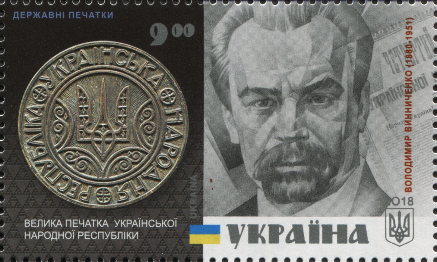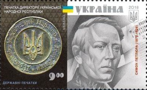 Г На марці «Печатка Директорії Української Народної Республіки» відтворено ескіз печатки з Тризубом і зображено Симона Петлюру – Головного отамана військ УНР і Голову Директорії УНР. Директорія УНР – найвищий орган державної влади відродженої УНР, який діяв із листопада 1918 р. до листопада 1920 р.